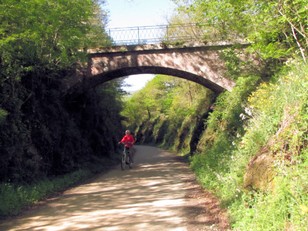 Toen we om acht uur wakker werden was het droog en de zon probeerde er zowaar ddorheen te komen. Na het douchen is Els de was in de machine gaan zetten. Toen ontbeten en de fietsen van de camper gehaald en is Dick naar de bakker gefietst om brood te halen. Ondertussen was het mooi zonnig geworden. Eerst wachten op de was maar het beek dat het programma drie uur duurde. Dus toch eerst maar gaan fietsen, stroomopwaarts richting Labastide Rouairoux, zo'n 15 km. Het was wel langzaam klimmen en een paar keer waren er stukjes die niet over de oude spoorlijn liepen waarbij er dan een steile afdaling en klim volgden. Soms even de fiets aan de hand. We gingen over oude spoorbruggen en ook door een tunnel.