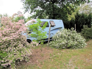 Zo werd het toch nog bijna zes uur voordat we op ons plekje stonden. Mooi aan de rand van de camping.