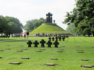 Vanmorgen zijn we dus maar weer op pad gegaan. Eerst langs de Duitse oorlogsbegraafplaats. Vermoedelijk is er vandaag een herdenking. Er was een groot gedeelte van de parkeerplaats afgezet voor Vips en we zagen in een ruimte kransen liggen. Deze begraafplaats is vrij sober.