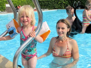Na een korte rust kwamen Bastiaan, Eveline, Marit en Iris. Na wat te hebben gedronken zijn we naar het zwembad gegaan. Iedereen, behalve ik, is in het koude water geweest en hebben leuk gespeeld. Ik ben na een tijdje gaan koken. Net voor het eten ging het onweren.