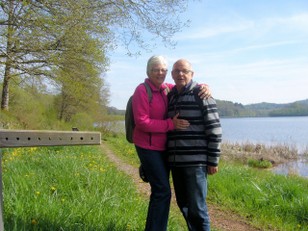 Vanmorgen wat nevelig boven het meer maar na het ontbijt werd het zonnig. De wandelschoenen maar weer aan en om de twee andere meertjes gelopen. Weer een mooie tocht. Even na twaalf uur waren we weer bij de camper.
