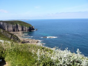 Toen we vanmorgen wakker werden was het weer zonnig weer. We zijn naar Cap Fréhel gereden en zijn daar een wandeling gaan maken. Je loopt boven de rotsen. Op één plek zitten veel vogels te broeden. Meeuwen en aalscholvers. De laatsten maken de rotsen helemaal wit.